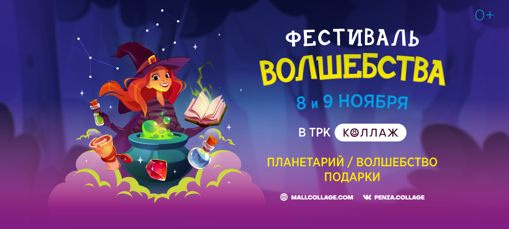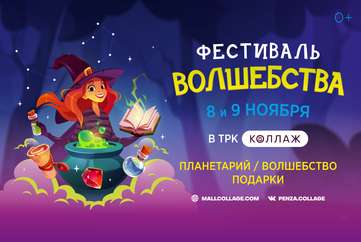 8 и 9 ноября в ТРК «Коллаж» пройдет осенний слёт магов и волшебников со всех краев и дальних уголков Земли ✨ Кто примчится на единорогах, кто прилетит на коврах-самолетах, кто трансгрессирует сразу в атриум ТРК «Коллаж» — счёту чародеям не будет 🔥 Юных гостей фестиваля ждут: